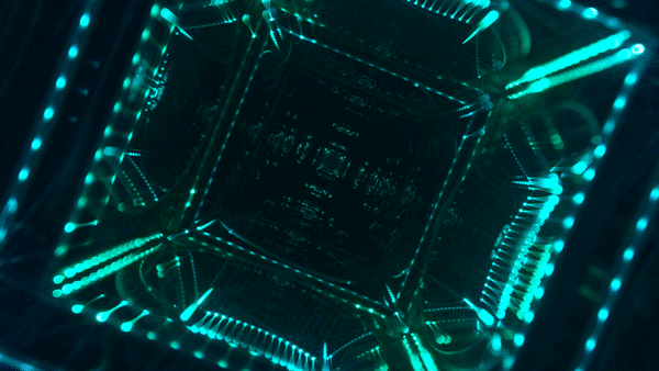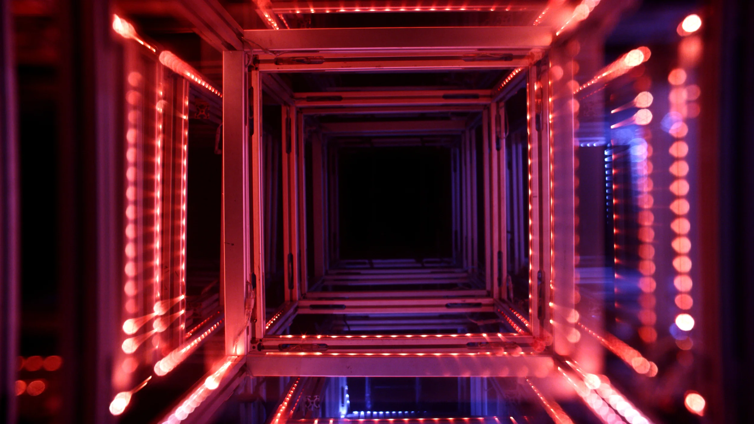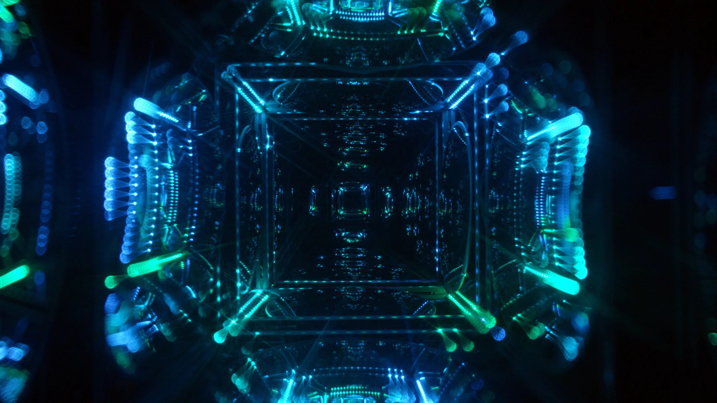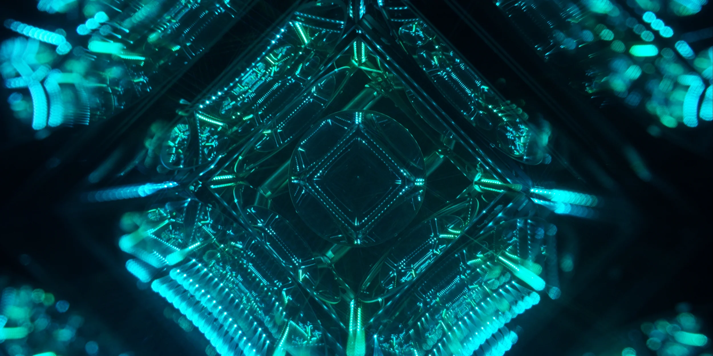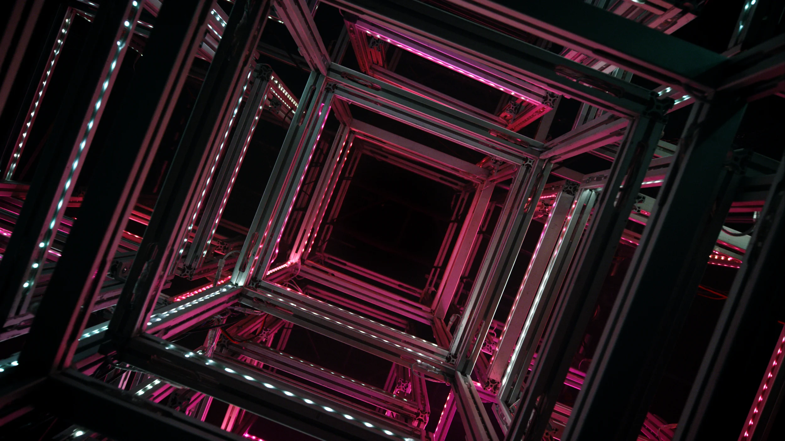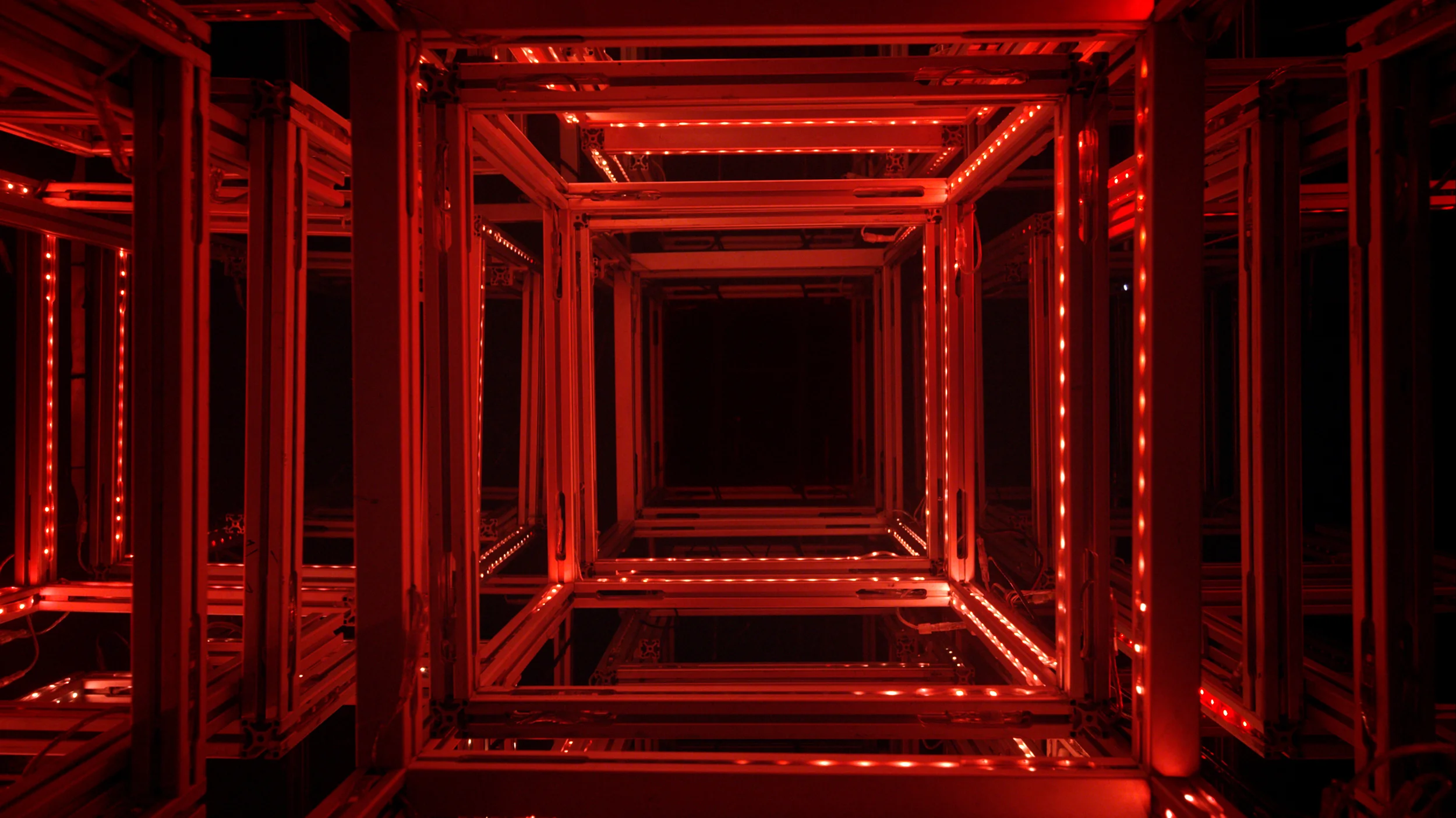 For the Generate video we used them in a few entirely new ways. We rigged them from the ceiling and used a camera equipped with a variety of lenses including a sphere lens that stretched the cube geometry semi-spherically. The motions of the camera through the structure gave us a variety of different effects as we manipulated the patterns running on the cubes to achieve aesthetics specifically for the video.