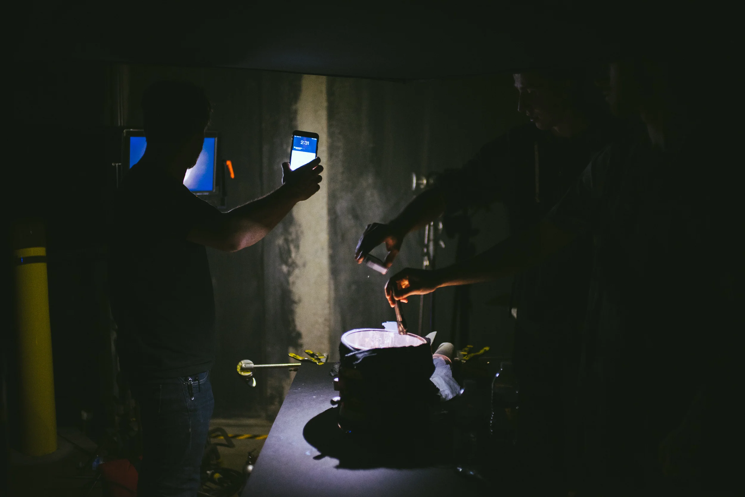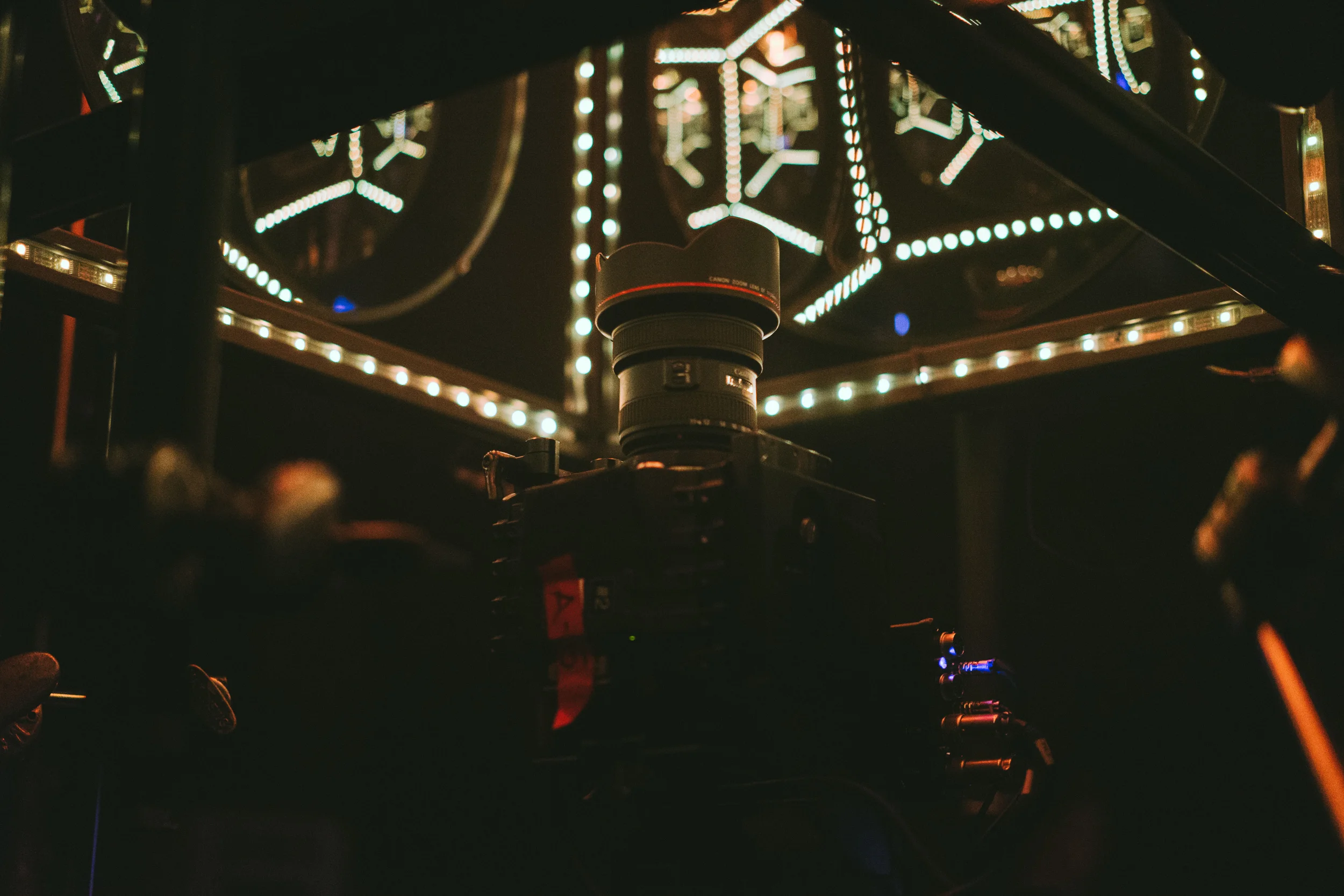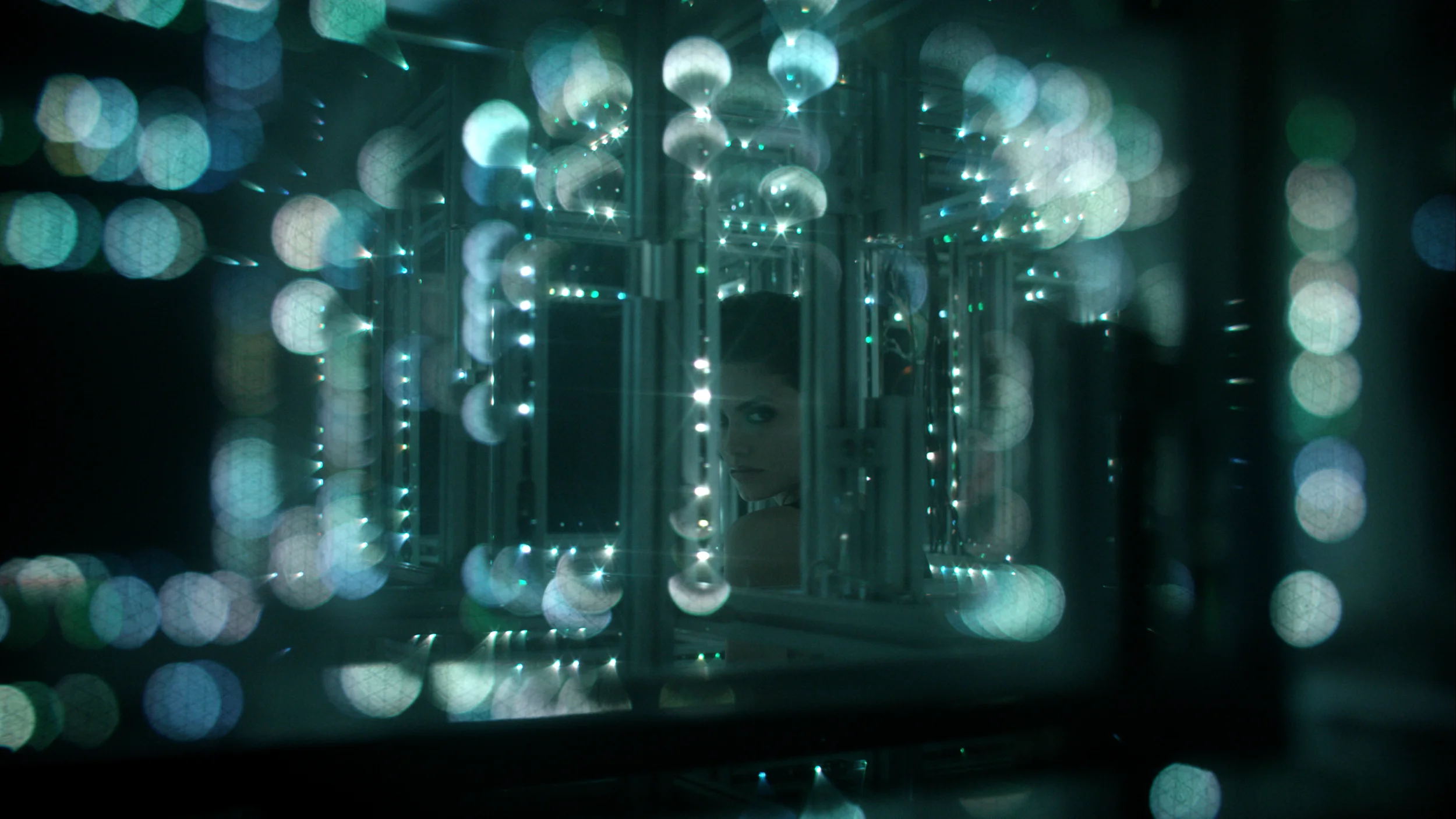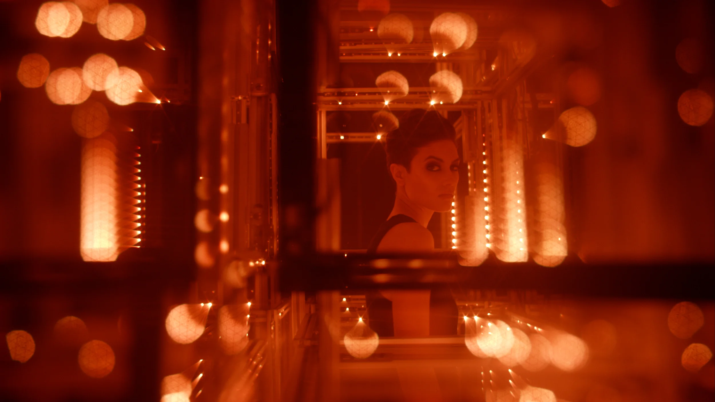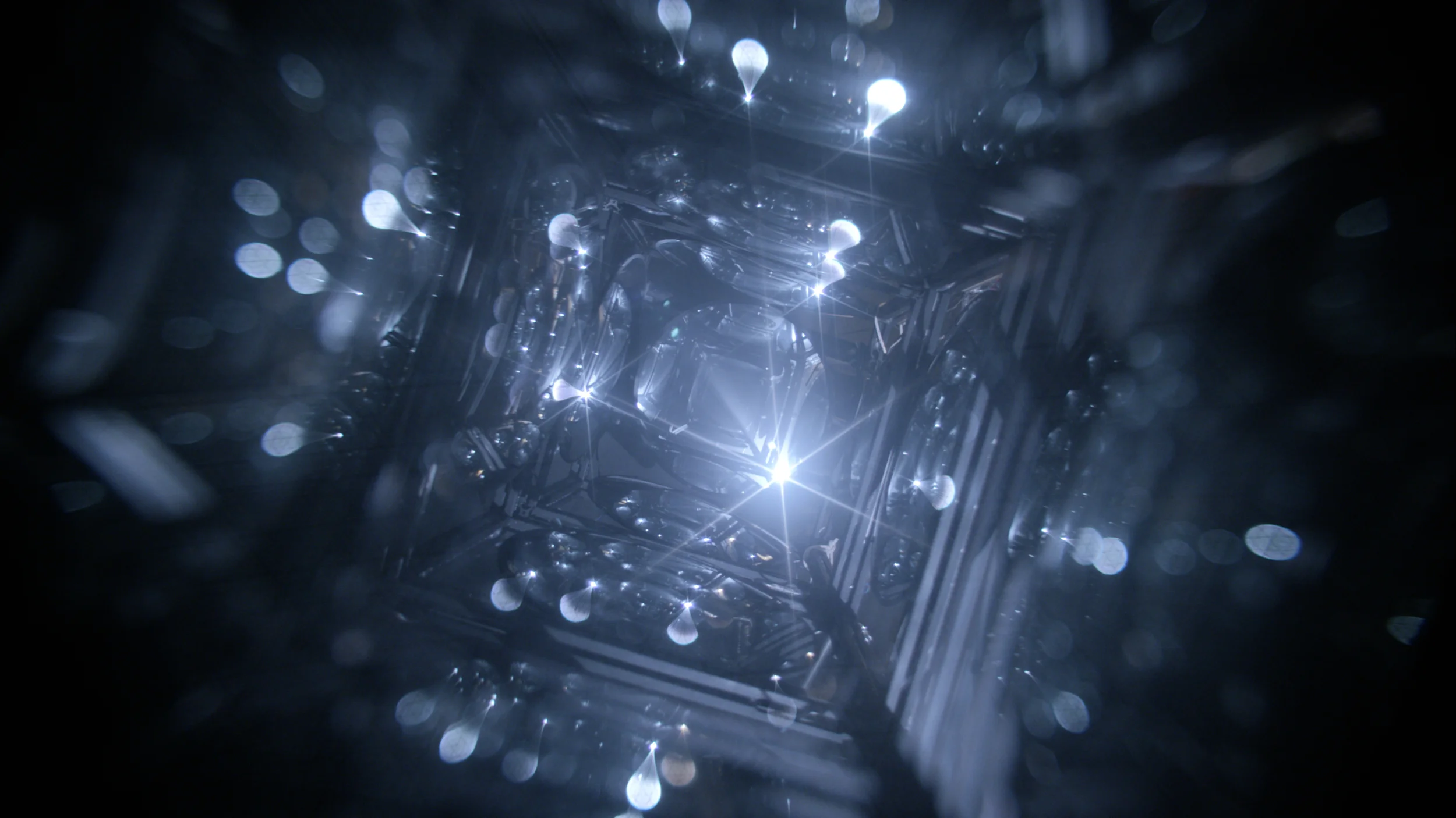 For this we had the privilege of working with Kenny Johnson, an extremely talented carpenter and craftsman. He was super helpful and generous, and totally essential in bringing the design to life. With Kenny’s help, we carefully drilled (by hand!) a pattern of holes, alternating in size, into the walls of the tunnel along a spiraling path. When hit with lights and fog, the result was a stunning geometric matrix of intense light beams sweeping past the camera, as well as an intricate pattern of glowing points along the interior of the tunnel. This effect was made all the more dramatic by the sphere lenses, crazy optical filters, and expertly executed camera moves.