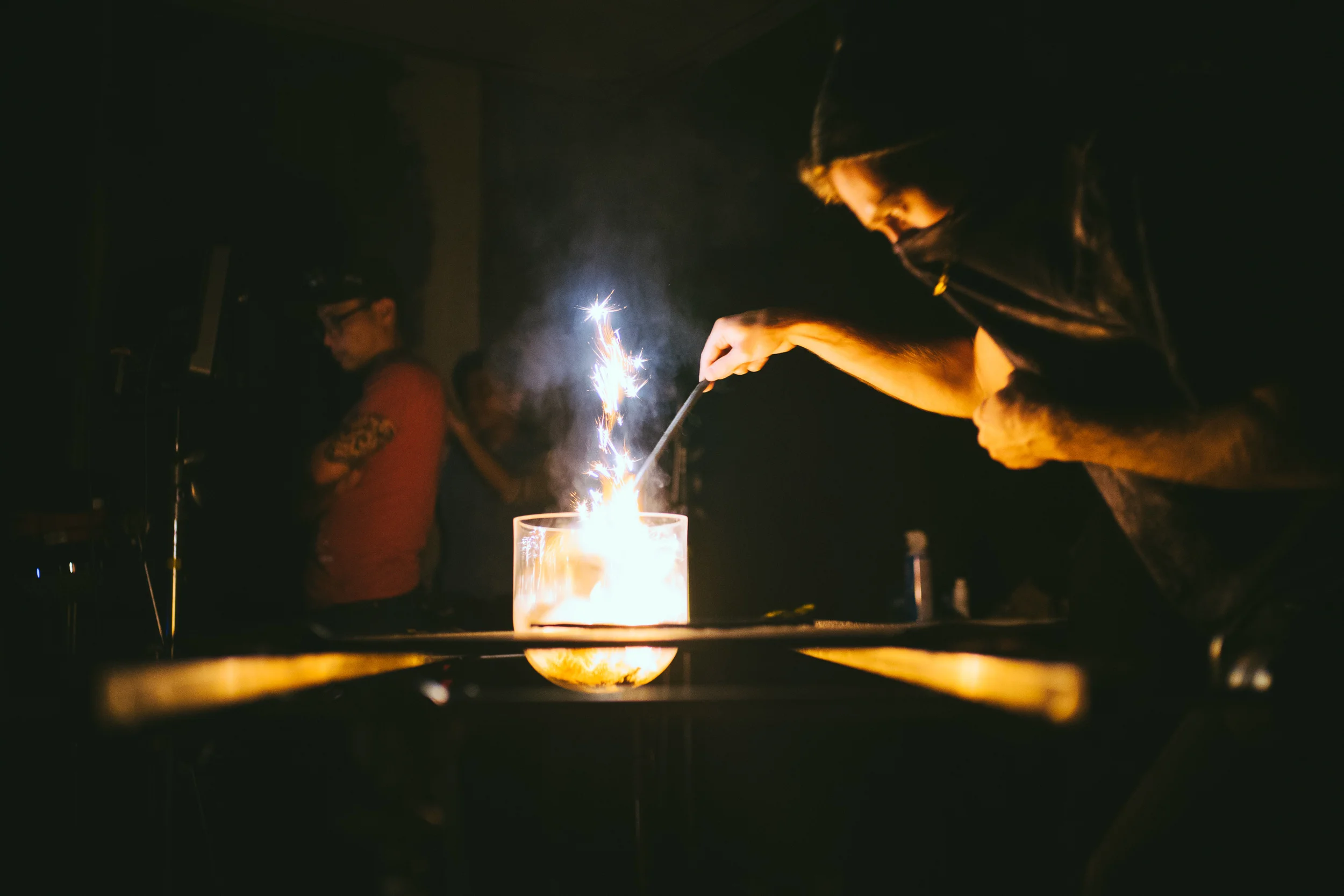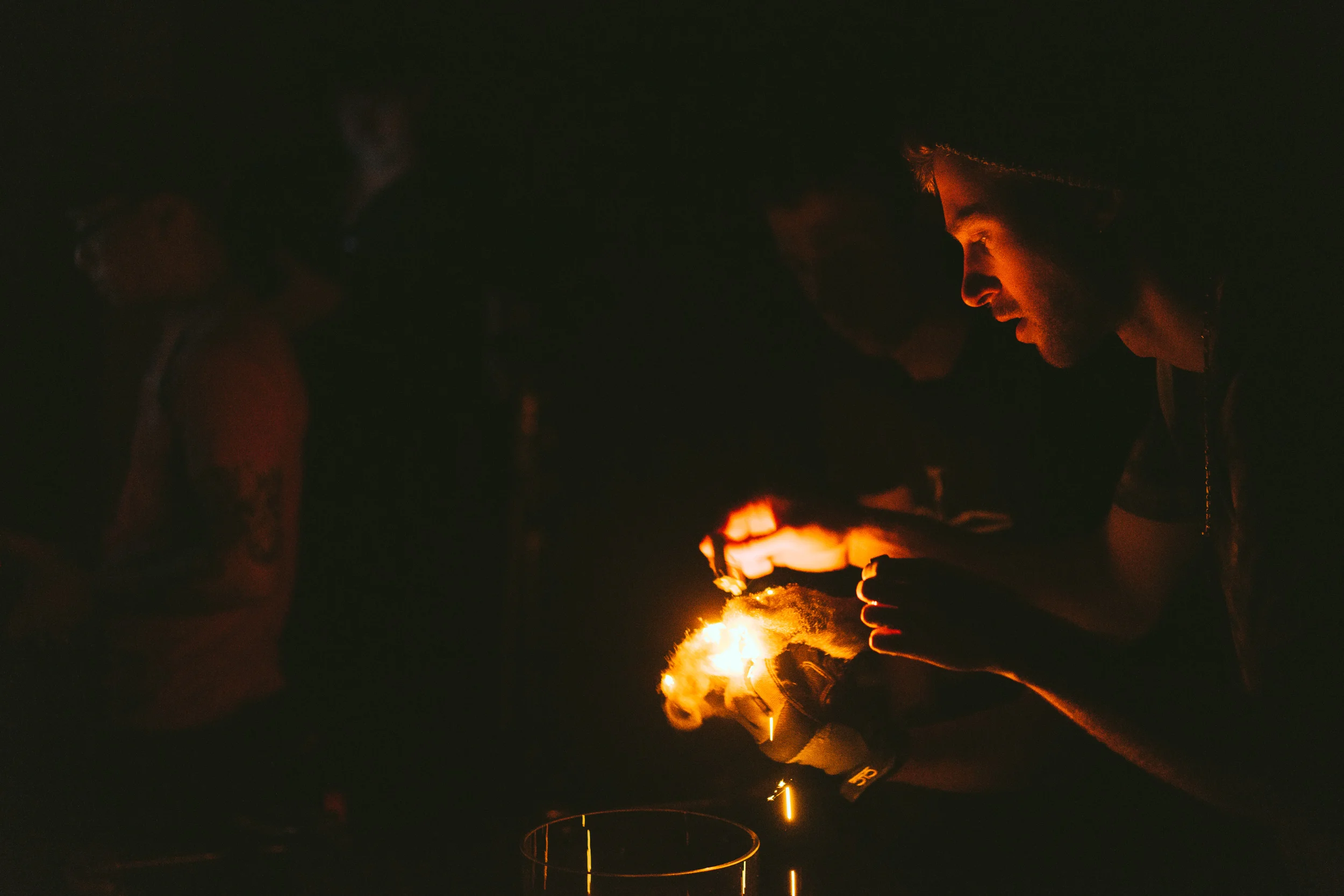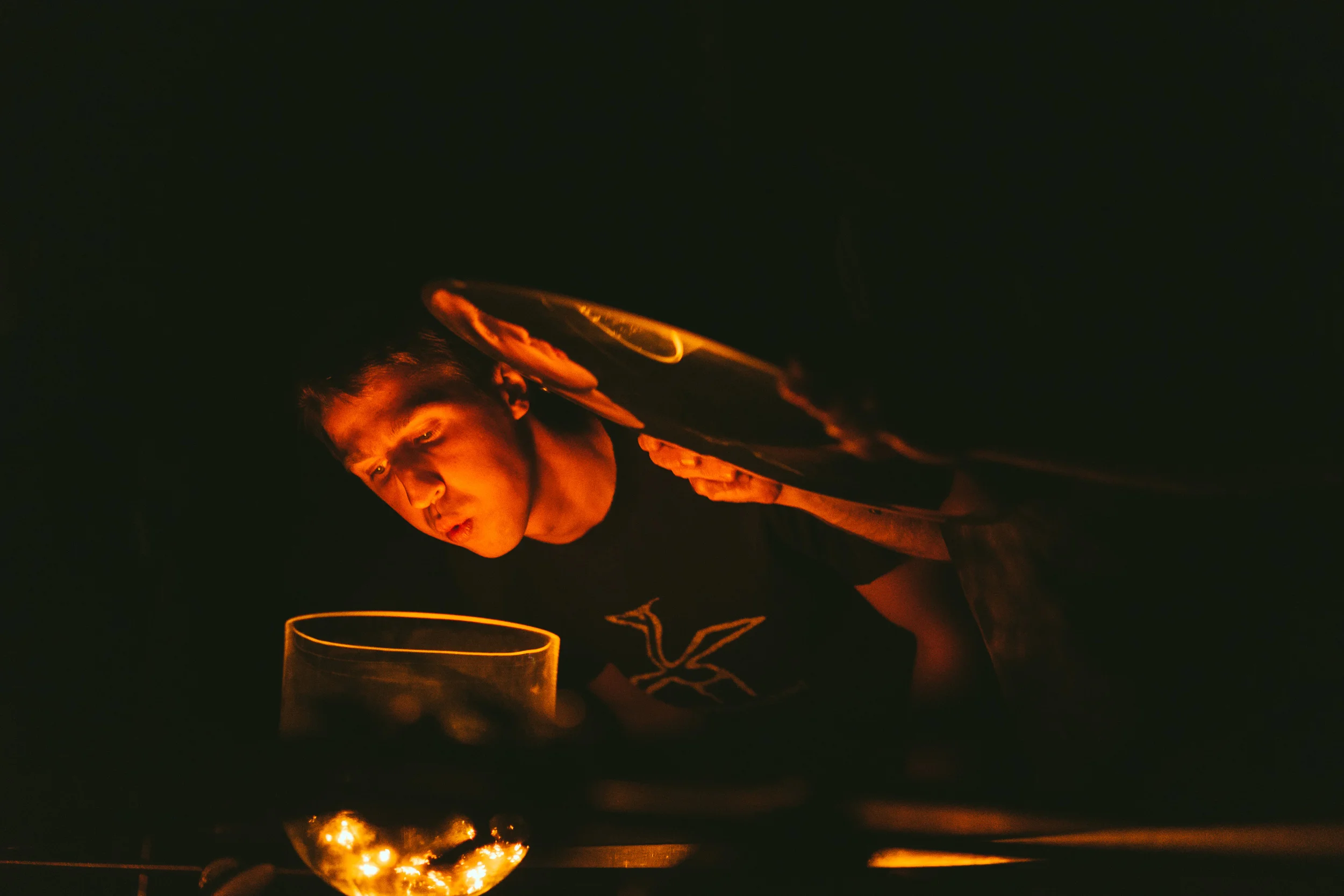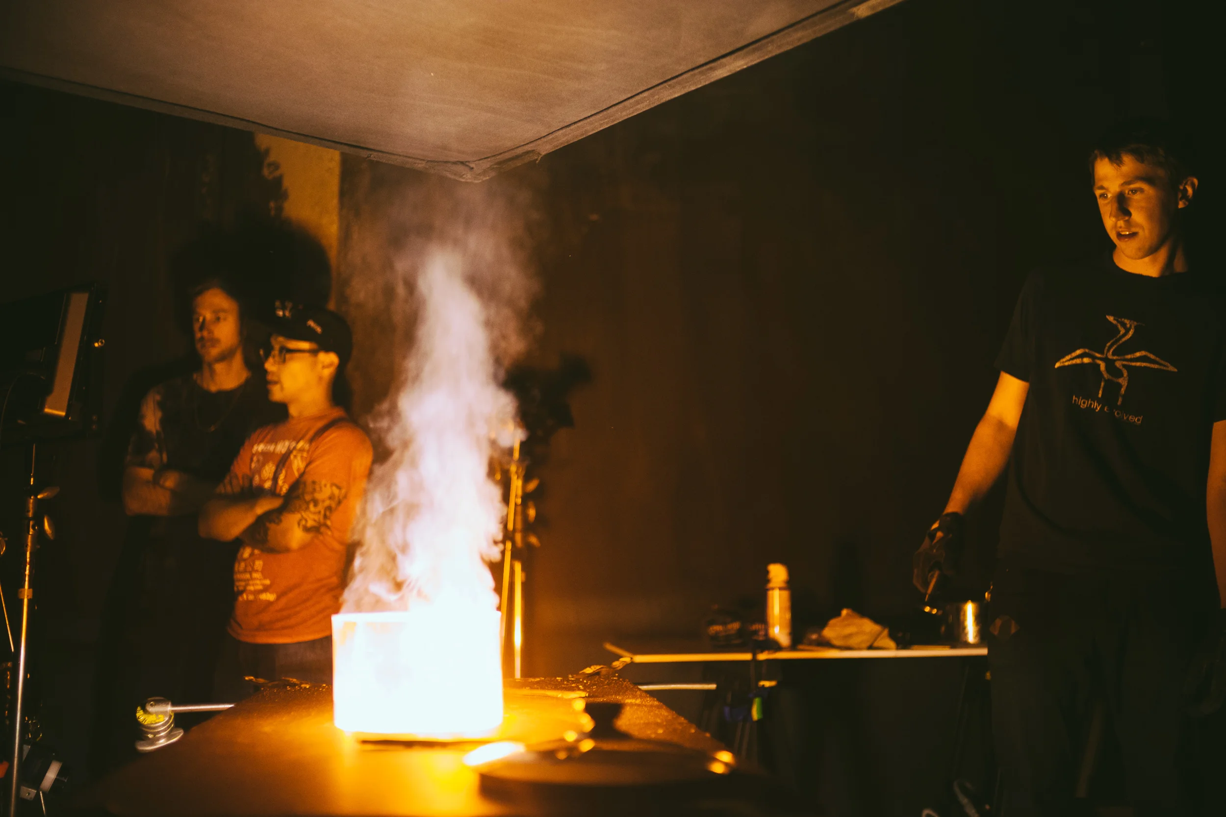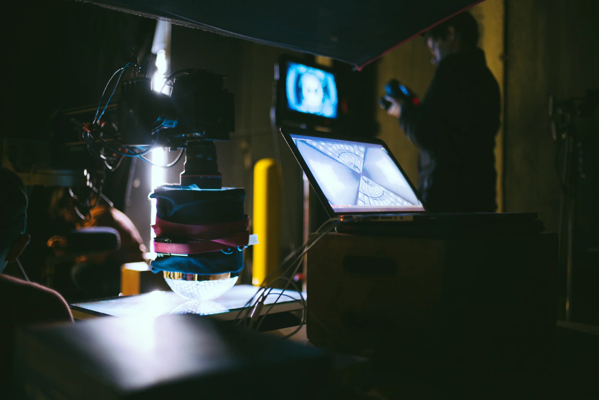 For this we had the privilege of working with Kenny Johnson, an extremely talented carpenter and craftsman. He was super helpful and generous, and totally essential in bringing the design to life. With Kenny’s help, we carefully drilled (by hand!) a pattern of holes, alternating in size, into the walls of the tunnel along a spiraling path. When hit with lights and fog, the result was a stunning geometric matrix of intense light beams sweeping past the camera, as well as an intricate pattern of glowing points along the interior of the tunnel. This effect was made all the more dramatic by the sphere lenses, crazy optical filters, and expertly executed camera moves.