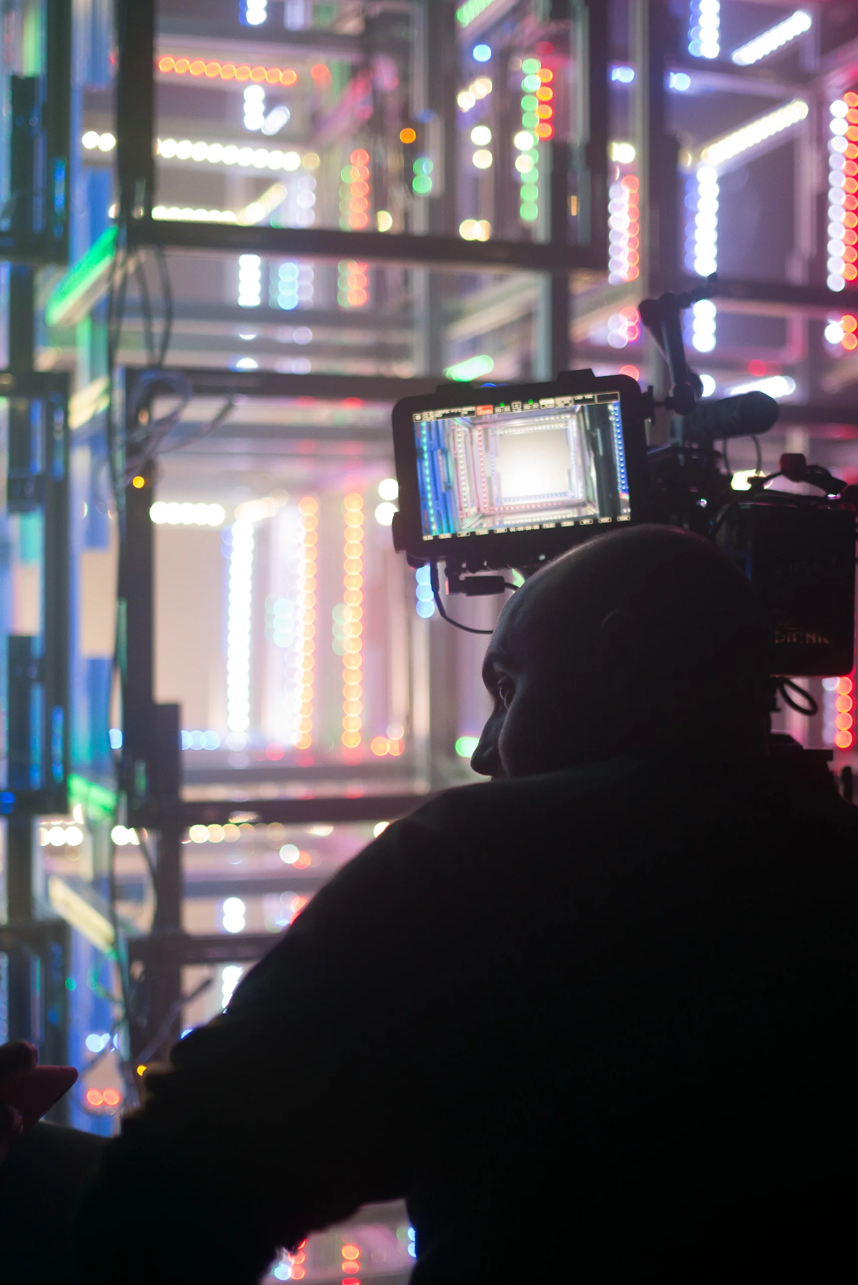 It all changed when we mocked up what it would look like if we had strips of color changing LED’s running inside the mirror tunnel. The Sugar Cubes were a great asset, a geniously modular piece of hardware that can run endless live patterns through any configuration you put them in. It was a magic combination. We could only hope that our previz in 3D looked as amazing in person...luckily it exceeded expectation. To be perfectly honest I’ve never felt my heart beat so hard while watching a live video feed. The endless maze of LED fractal patterns that reflected in the mirrors were so dense and exciting it nearly gave me an panic attack.