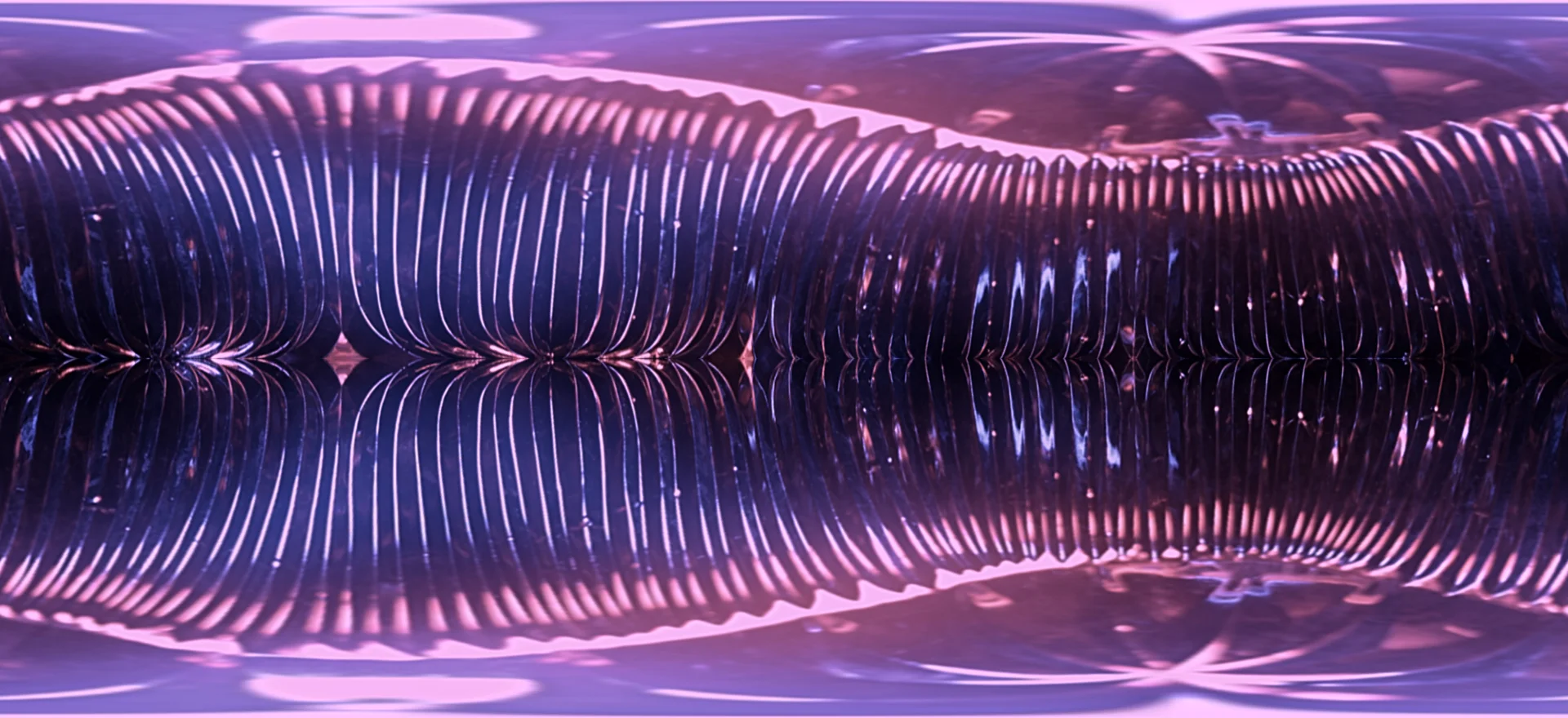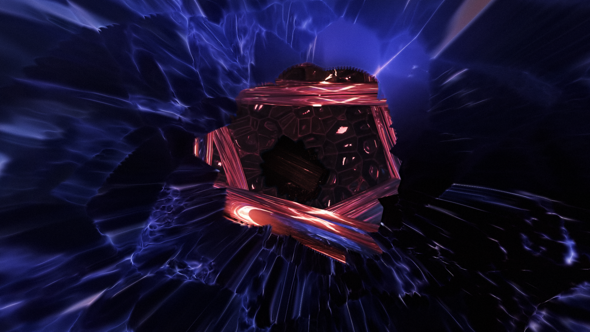 The orb interior worlds were created with a mixture of live mylar video textures, cinema 4D and Arnold Renderer. Chase & Austin Hochstatter did various explorations on structures and render styles before deciding on the alien interior space.