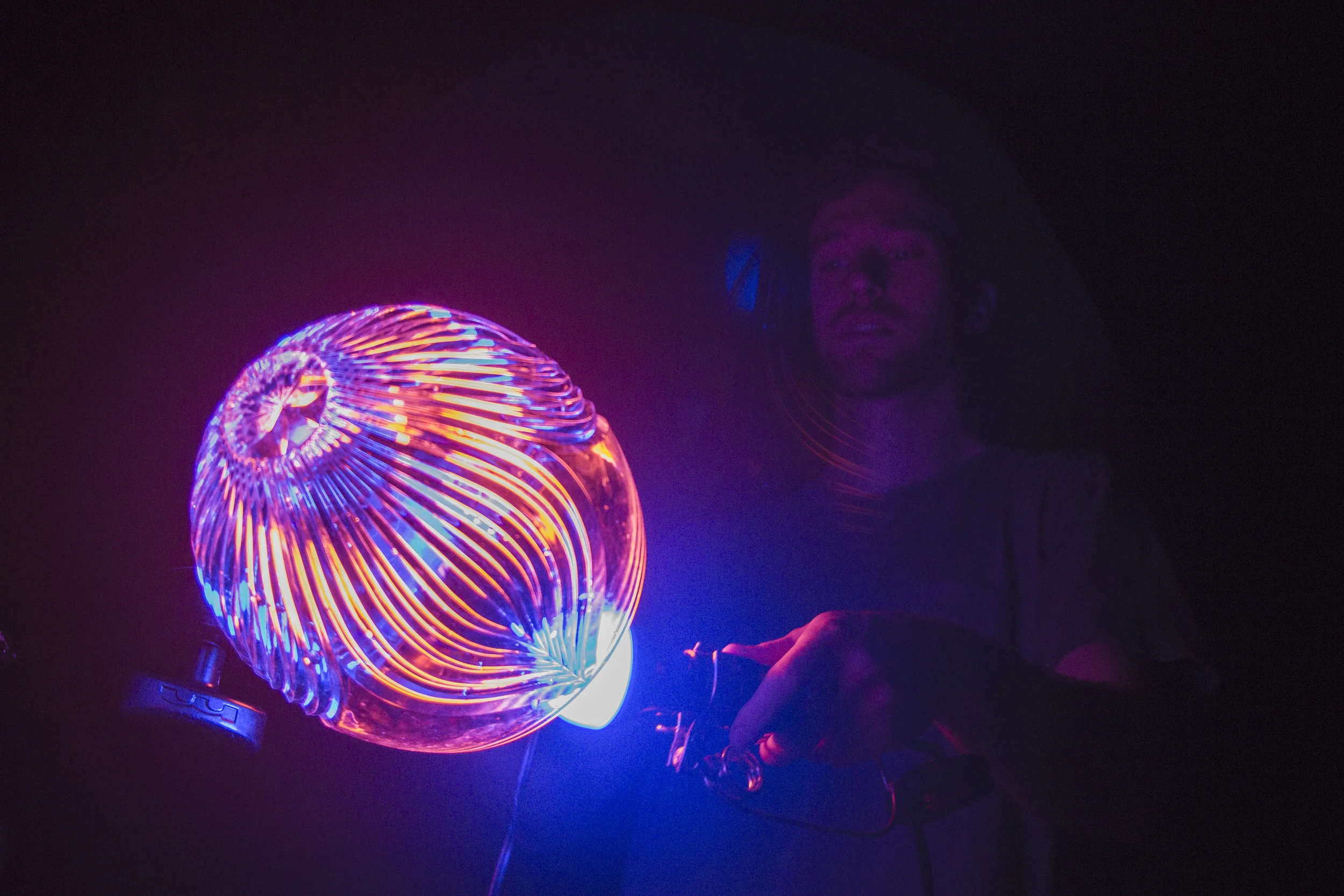 As practical SFX geeks, we put a lot of effort in making our graphics in camera. Meaning what you see on screen is what you would see in real life on shoot, beautified by a tricky camera angle and some light post-processing (usually coloring). The orb presented a challenge, as we wanted a warping sphere to be floating in the middle of the scene, so while staying true to our morals we bent the rules a little bit. The orbs you see below are a separately recorded pass of crystal vases that were reconstructed into a looping sphere texture using 3D software.